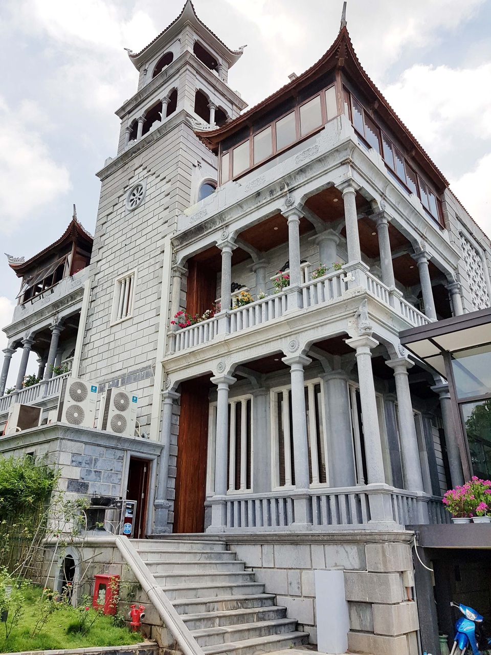 Tòa nhà có mặt bằng rộng 450m2, cao 27m được xây dựng hầu như hoàn toàn bằng đá trong 12 năm, giàu giá trị kiến trúc và nghệ thuật trang trí trên đá là niềm tự hào của những người thợ đá Ninh Vân.