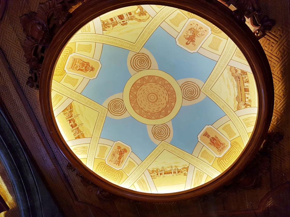 Tòa lâu đài còn có sự góp sức của nhiều nghệ sĩ nổi tiếng của Việt Nam như: Lý Trực Sơn, Vũ Xuân Đông, Đào Châu Khải... Trong ảnh là một trong những vòm trần của bộ tranh "Vòm trần lịch sử Việt nam" trong đại sảnh của tòa nhà do nghệ sĩ Vũ Xuân Đông sáng tác.